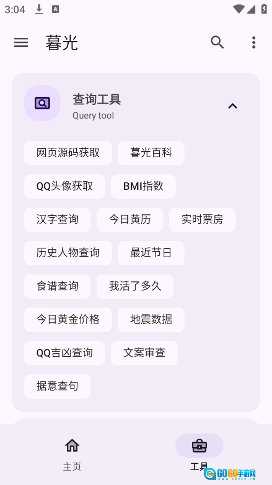 暮光工具箱是一款功能全面的手机工具箱应用,涵盖头像、壁纸资源以及各类资料查询工具。其中壁纸和头像支持直接设置或下载保存,所有工具均为免费提供,无需下载安装,打开即可便捷使用。我们还会持续更新资源库,让你随时随地都能享受工具带来的便利。
