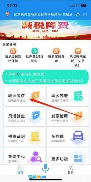 2.点击“城乡医疗”;