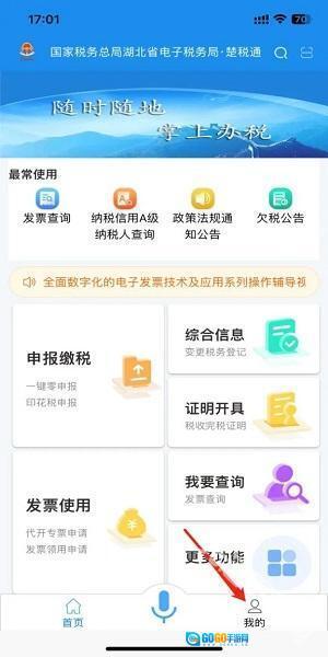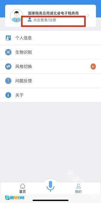 1.楚税通,点击【我的】—【点击登录/注册】。