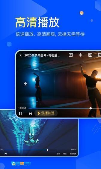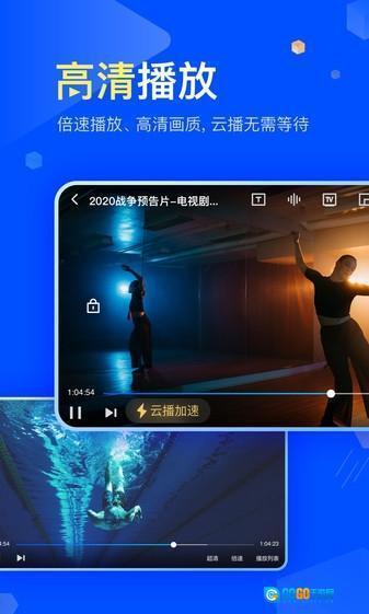 云盘内的视频内容支持直接播放,用户可体验双速播放、高清画质以及一键投屏功能。