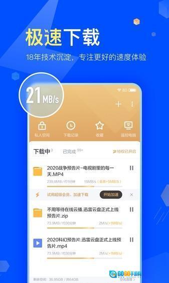 迅雷功能全面且强大,数据传输速度快,用户无需长时间等待。软件功能可免费使用,UI界面设计贴合用户使用习惯,简洁大方的风格提升了用户体验,助力用户解决各类数据问题。