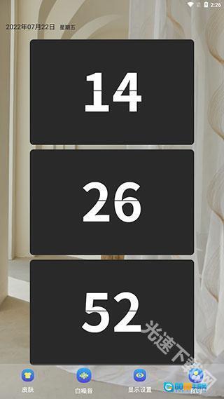 1、简约的台式数字时钟,搭配经典的动态翻页效果,视觉体验更舒适清晰;