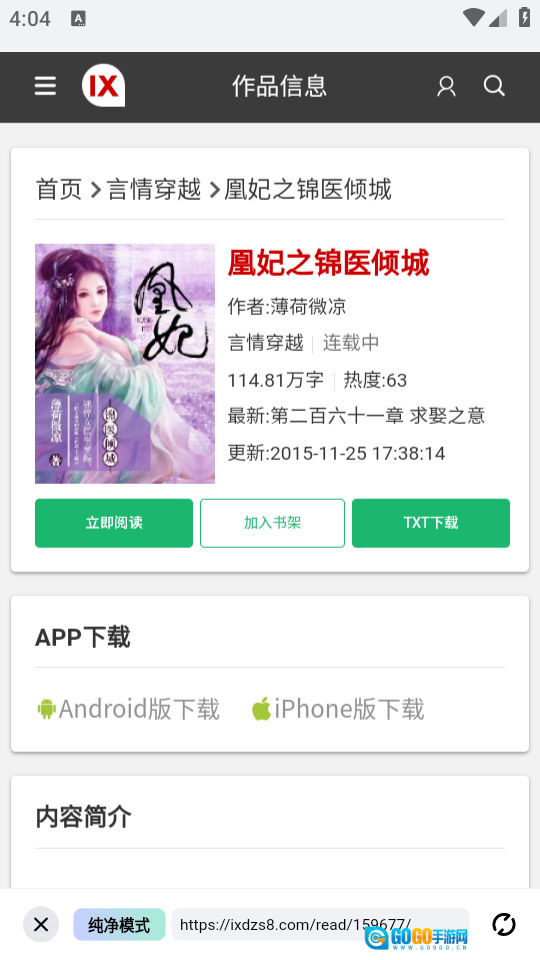 3、这里所有的小说资源都能免费阅读,热衷于追书的朋友可千万别错过啦。