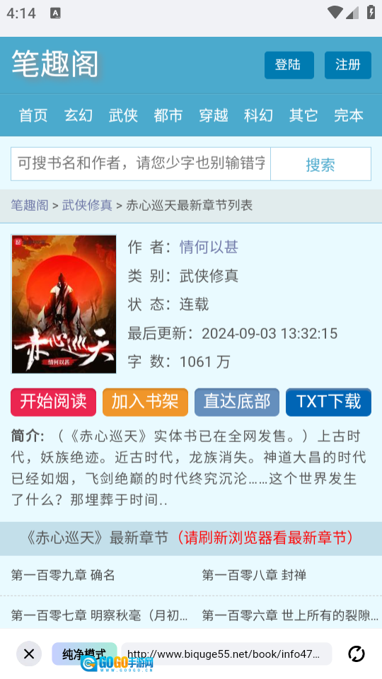 2、进入首页,在搜索框中输入小说名称,点击搜索。