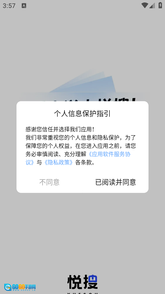 1、安装悦搜浏览器后将其打开,并同意相关的政策与协议。