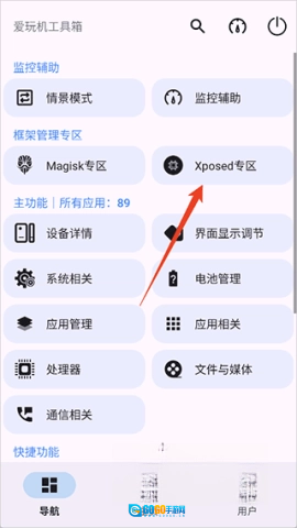 2、进入应用后,点击【xposed专区】以进入功能界面;