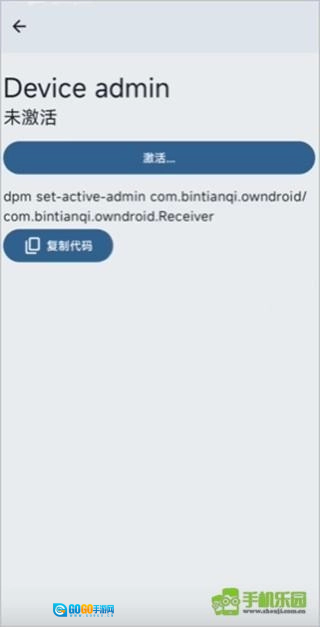 3、当然你得先在手机上安装并启动好Dhizuku,之后就能进入激活界面,点击【复制代码】按钮即可。