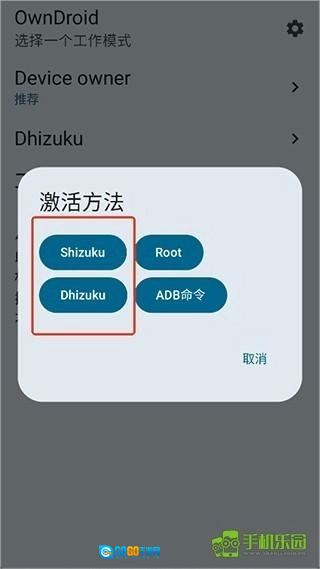 2、接着挑选一种激活方式,未获取root权限的用户可选用Shizuku或Dhizuku来激活,不过在此建议优先使用Dhizuku完成激活操作