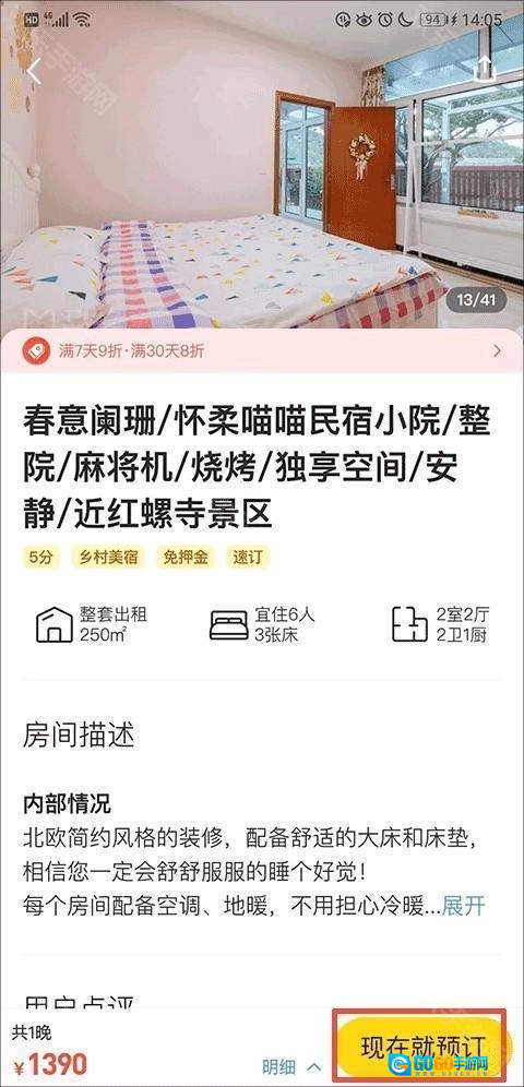 4、在民宿或酒店的详情页面,您可以全面了解住宿的各类信息,若觉得满意,即可找到并点击“立即预订”按钮。