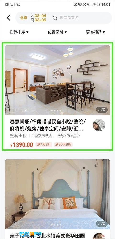 3、接着在酒店或民宿的选择页面里,挑选并点击你觉得满意的民宿或酒店。