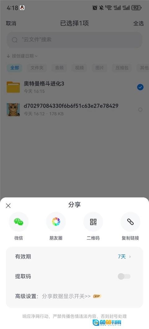 2、添加你需要分享的图片或文件夹等内容
