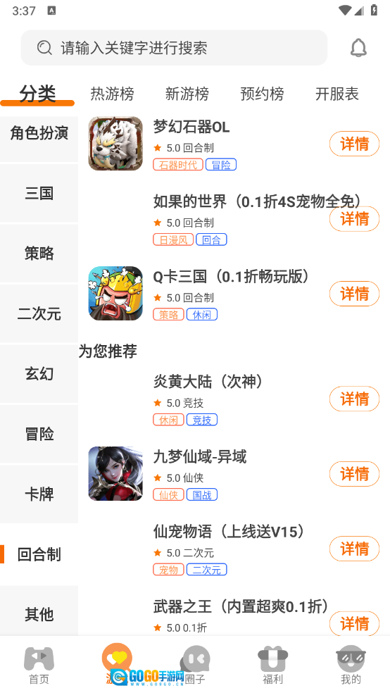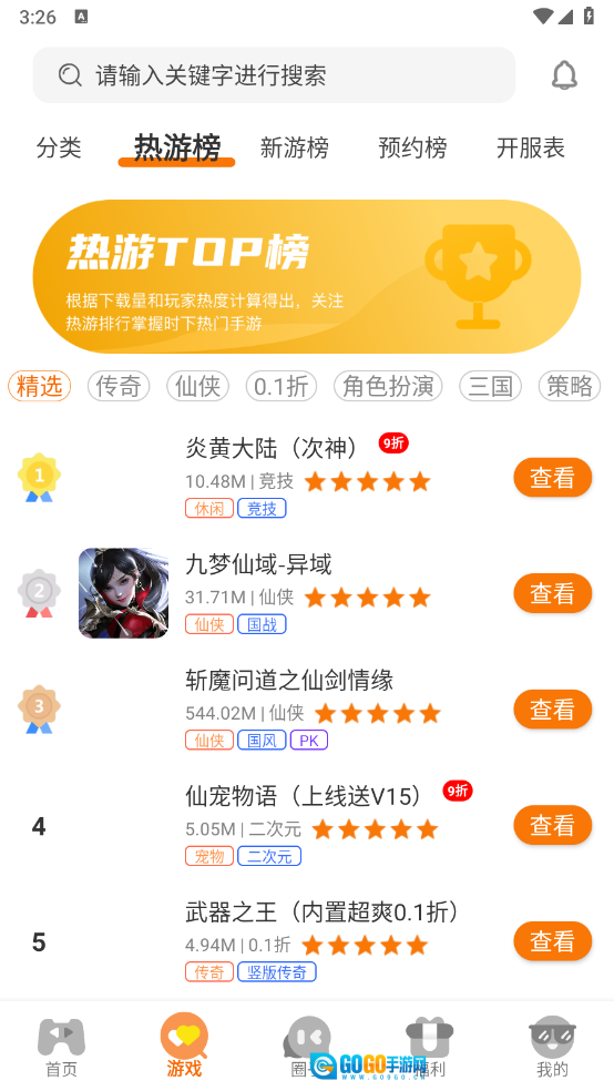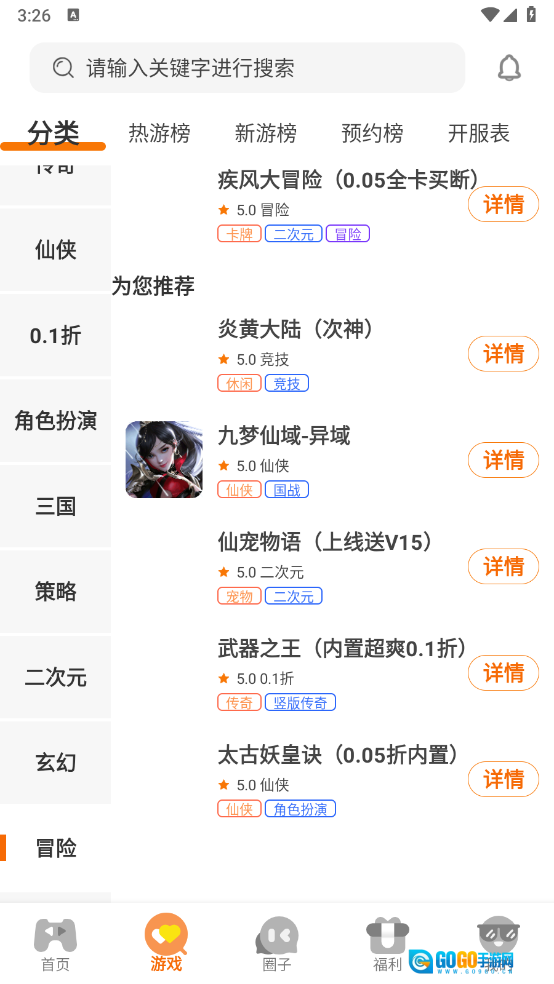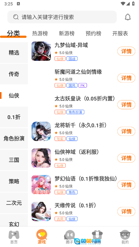 2、游戏页面设有丰富多样的游戏分类,涵盖仙侠、玄幻、冒险等不同类型。