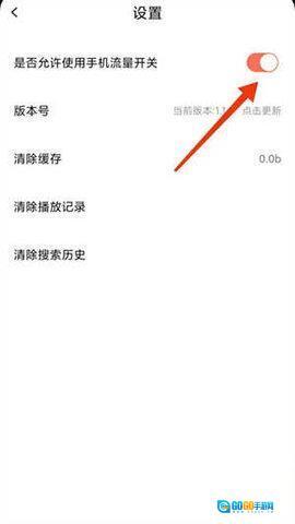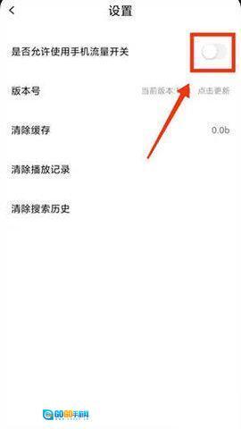 3、点击「是否允许使用手机流量开关」右侧的按钮。