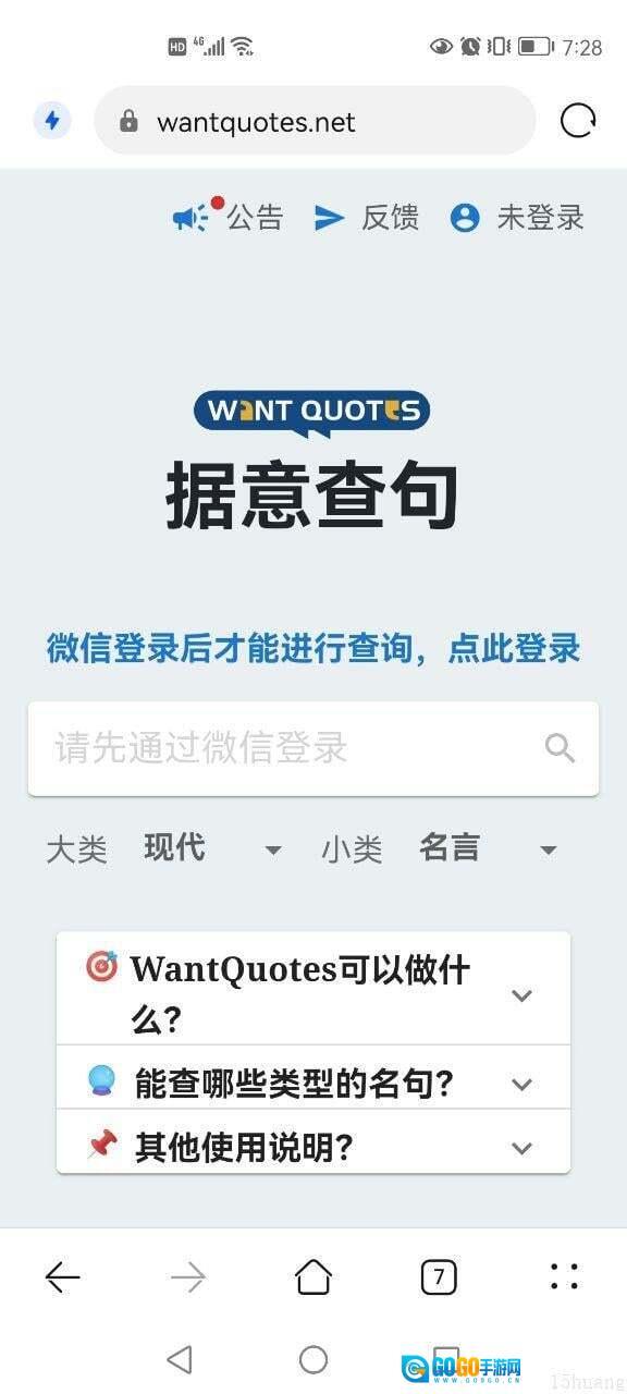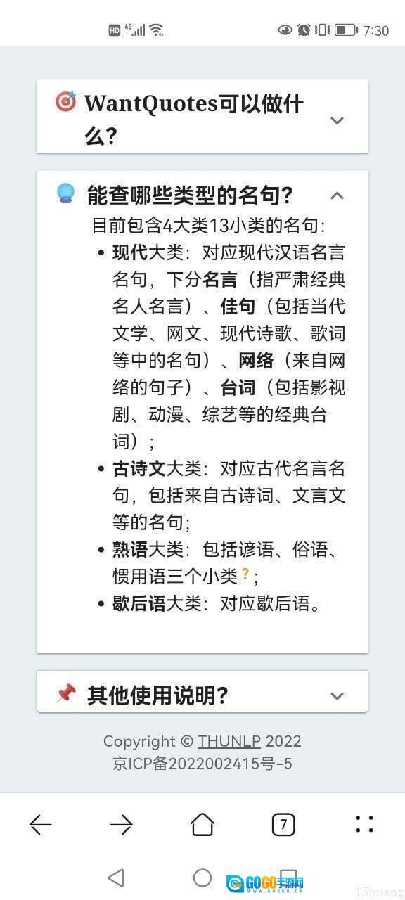 据意查句(WantQuotes)是一款借助人工智能技术实现查词找词功能的工具。很多时候我们撰写文章时,希望用上一些优美的词句,却一时难以想起。这时就可以使用这款工具,只要输入白话文,它就能帮你搜索出意思相同或相近的古诗词、成语、歇后语等各类句子。