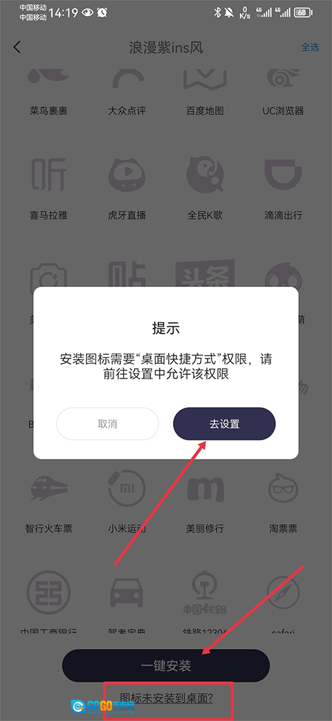 4、若安装失败,可点击下方的“若图标未安装到桌面”选项,之后前往设置页面开启相应权限,再重新进行安装操作即可。