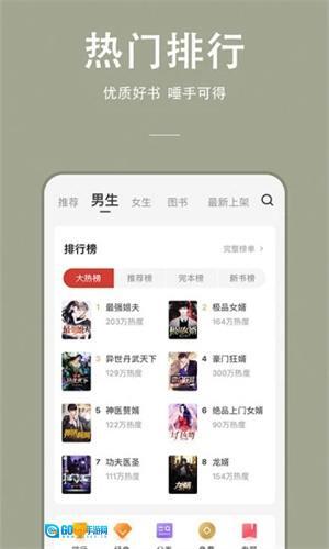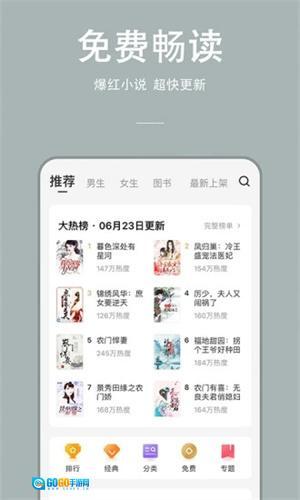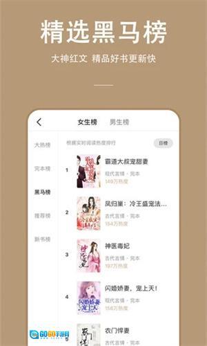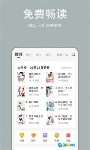 2. 设有小说热门排行榜,你能在此快速挑选最受欢迎的小说阅读;更新速度快,你喜欢的内容会第一时间提醒;书库资源丰富,涵盖各类网络小说。