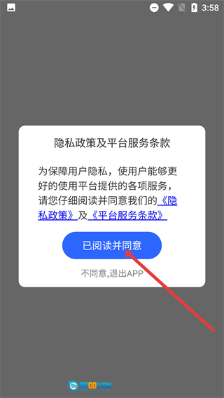 1、打开“福棠医生”应用后,会弹出“隐私政策及平台服务条款”的弹窗,点击【已阅读并同意】按钮,即可进入应用的登录界面。