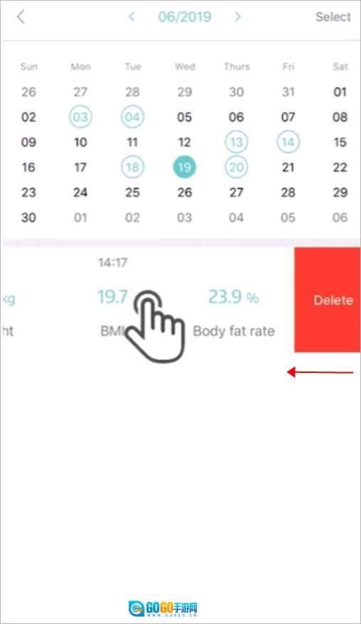3、若要删除记录,可向左滑动需删除的那组记录,随后点击删除选项完成操作。