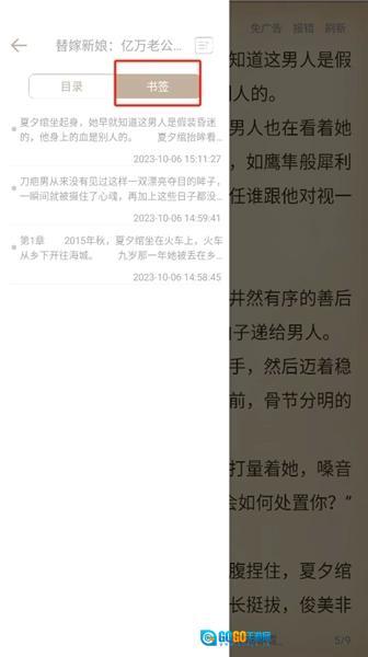 3、进入书签目录后,所有书签记录都会显示在这里,点击任意书签即可直接跳转到对应的已添加书签页面。