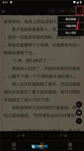1、进入阅读界面后,点击右上角的三点图标,选择“加入书签”选项,即可为本页小说添加标记。