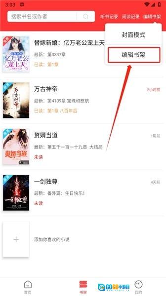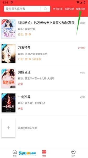 1、请先在本站安装这款小说免费阅读软件,打开软件进入书架界面后,点击右上角的编辑书架按钮。
