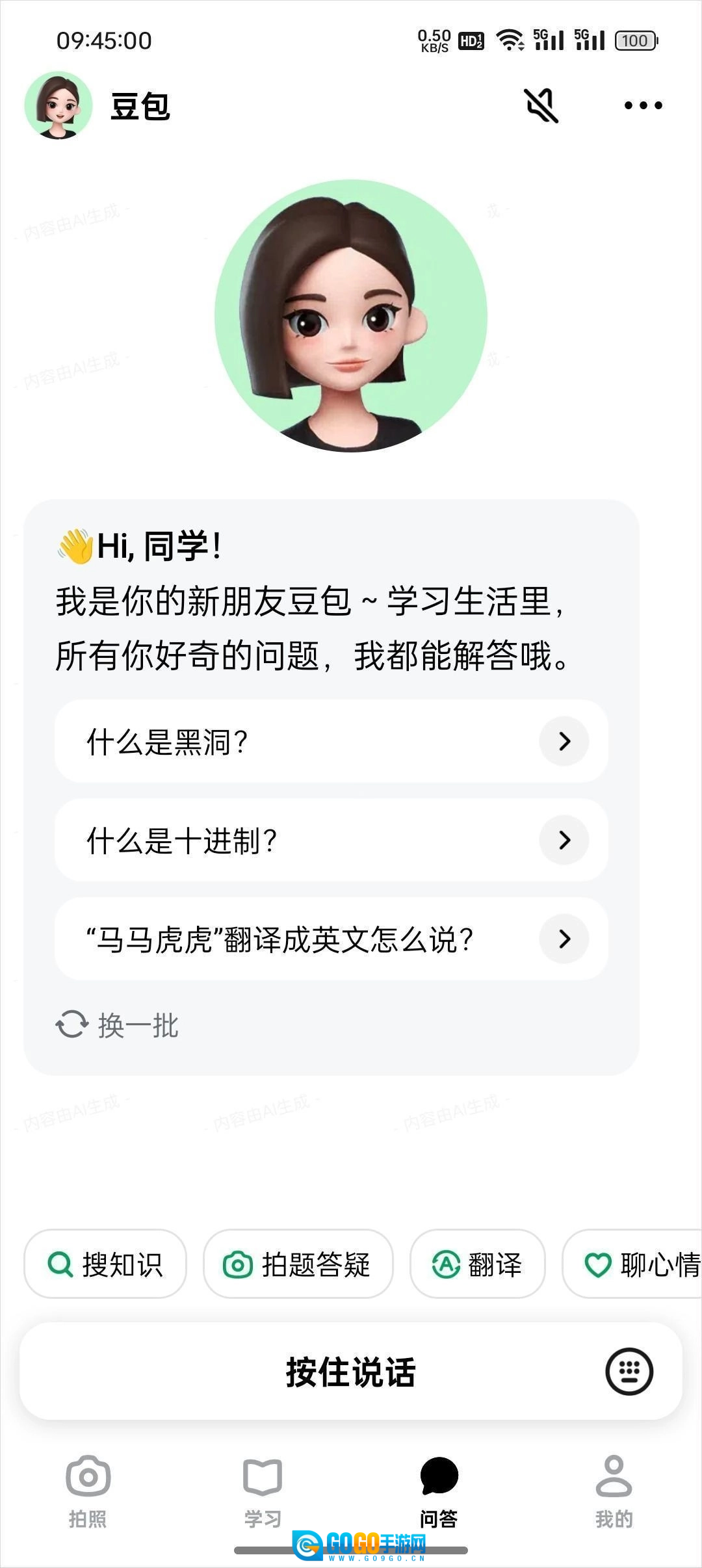 1、AI答疑和问答功能可助力解决学习难题、探索百科知识,让学生在学习中遇到的疑问能获得及时解答。