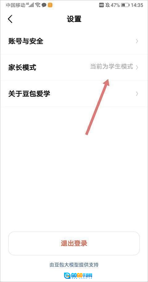 2、接着在设置页面里把模式从学生模式切换成家长模式