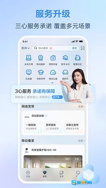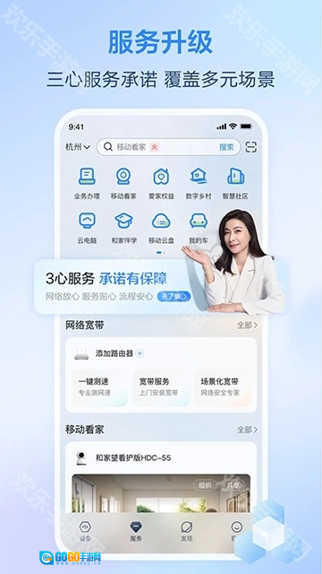 1、移动业务,家庭宽带一站式自助服务(包含续包、折扣提速、宽带新装),以及生活费用缴纳服务。