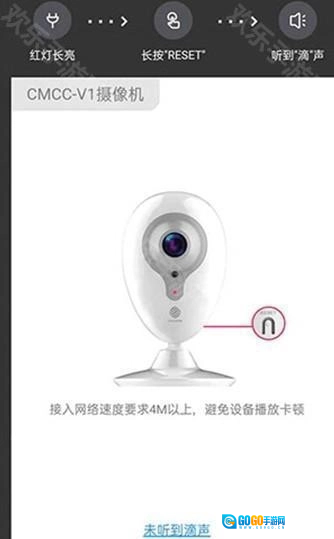 3、在重置摄像机页面,点击听到滴声。