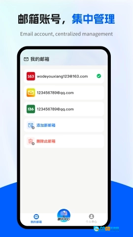 4、用户还可以实时查看自己添加的邮件账户,随时添加或删除邮件账户,清晰可见。
