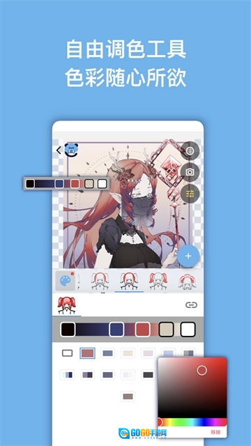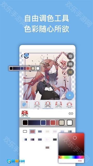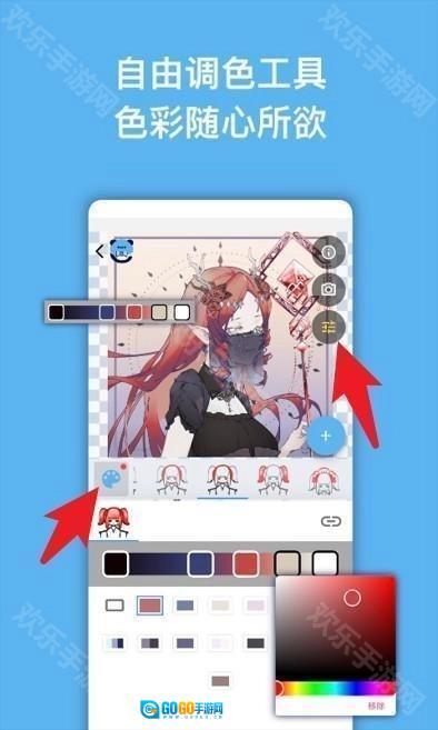 2、调色工具助你轻松调整每一处细节色彩,打造独一无二的角色风格体验。