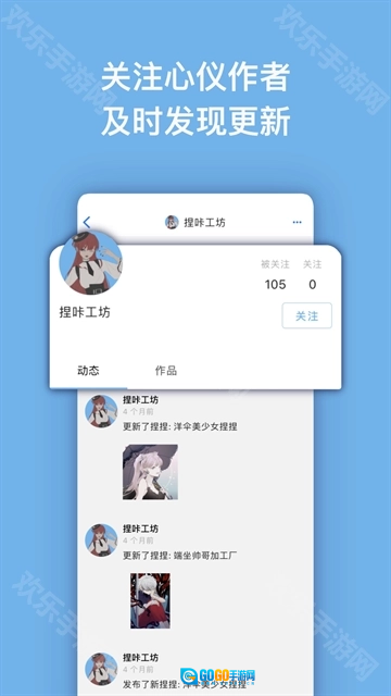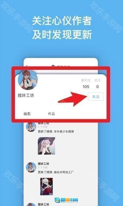 3、关注心仪的捏脸创作者,能第一时间知晓他们发布的新作品与创作动态。