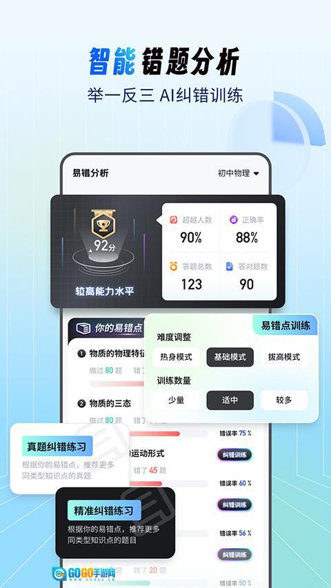 1. 高效学习工具:借助智能化的题目推荐与错题本功能,助力用户高效提升学习成效。
