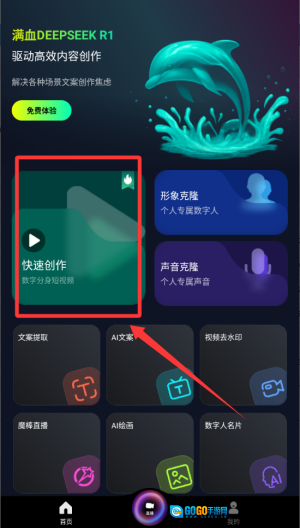 3、选择左边的快速创作。