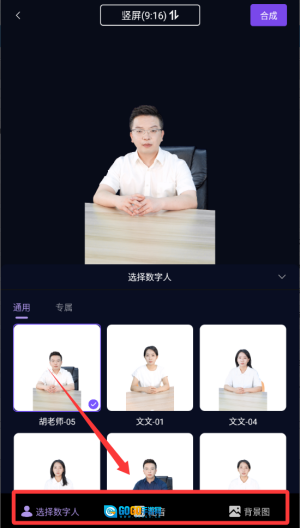 4、然后先选择数字人配音再添加背景图即可完成。