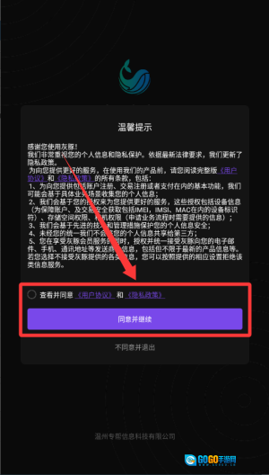 1、点击同意并继续按钮进入页面。