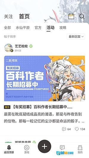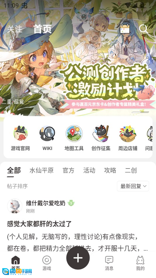 1、在软件首页,我们可以看到游戏、WIKI、地图工具、创作征集等多个板块。