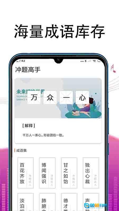 这里汇聚了丰富的成语知识点题库,每位用户都能参与线上多样题型的挑战——这就是《冲题高手》。作为一款优质的答题竞技平台,它通过富有知识性的题型帮助你强化记忆,掌握更多成语知识,使用体验十分出色。
