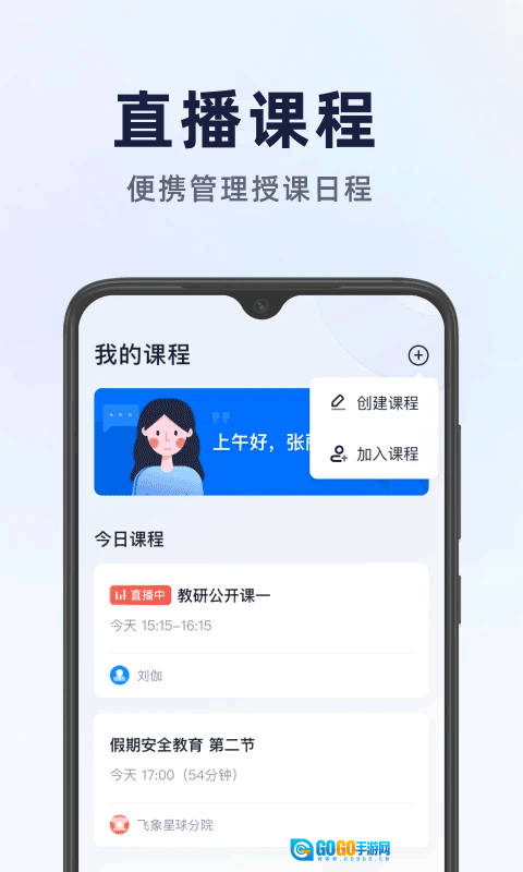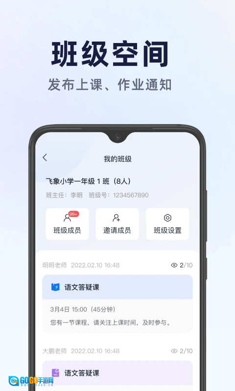 老师创建班级后,会邀请授课老师和学生加入该班级,随后在班级里发布各类通知,并开设线上课程。