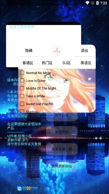 2、音乐分类清晰明确,设有普通区、热门区、DJ区以及英语区。