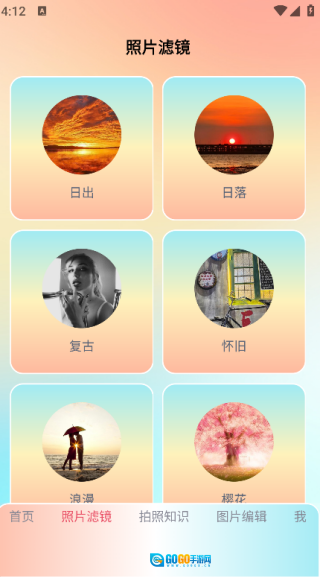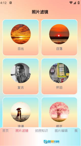 点击页面下方的“照片滤镜”选项,就能看到丰富多样的滤镜资源