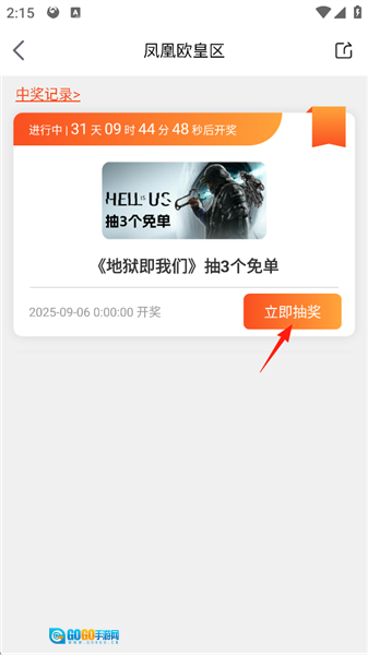 3、点击屏幕右侧的“立即抽奖”。
