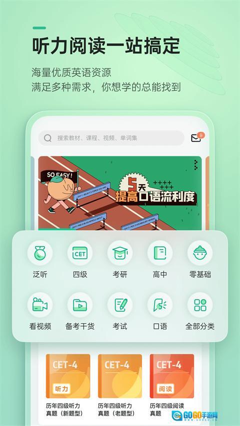 4. 口语练习:配备跟读训练与语音识别功能,助力用户修正发音,增强口语表达水平。