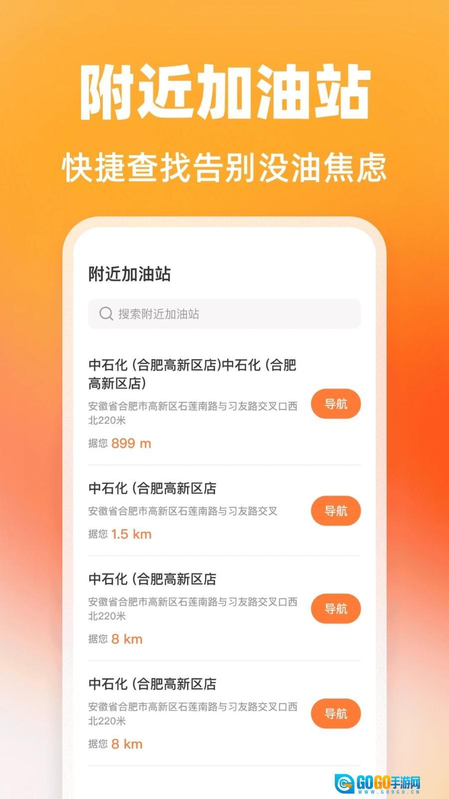 3、支持查询附近的加油站,实时展示位置与距离信息,便于货运途中及时补充燃油。