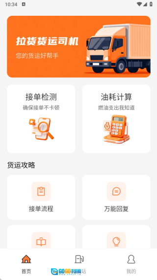 拉货货运司机助手是专为货运司机打造的实用工具,可一键优化接单检测流程,快速排查问题以提升接单率。接单指南模块内容详尽,涵盖流程解析与老司机经验分享,帮助司机避开常见问题;同时具备附近加油站查询功能,实时显示位置与距离,并搭配油耗计算工具,精准核算燃油成本。