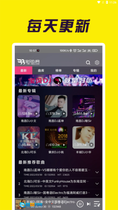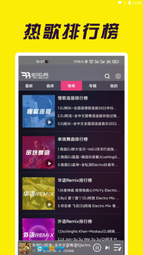 2、该区域还专门为各类DJ爱好者提供内容存储,在这里既能听到大江南北的各类流行DJ作品,也能欣赏到动听的DJ音乐。