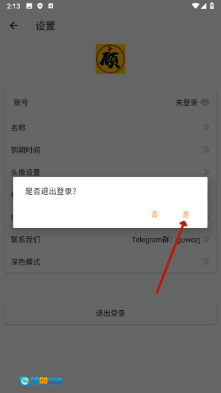 4、在弹窗中,点击【是】,即可完成退出登录操作。