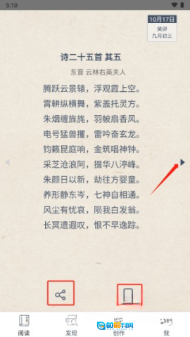 在这个模块里,你能左右滑动,尽情领略诗词的魅力,遇到心仪的作品时,随时收藏起来,或者分享给和你情趣相投的朋友们。