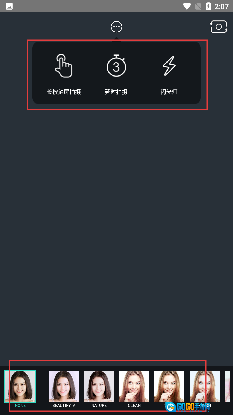 4、可选择长按触屏拍摄、延时拍摄、闪光灯等多种拍摄模式,同时搭配丰富的美颜滤镜效果,以此来满足用户多样化的拍摄需求。