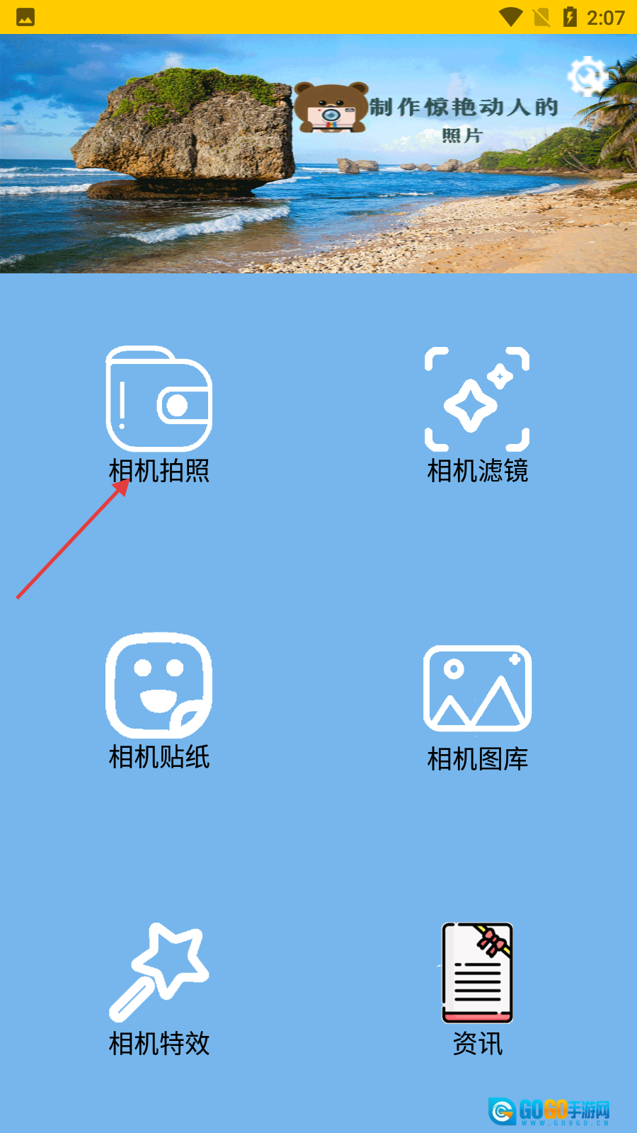 2、进入功能选择界面后,点击【相机拍照】选项,即可进入相机拍摄界面。